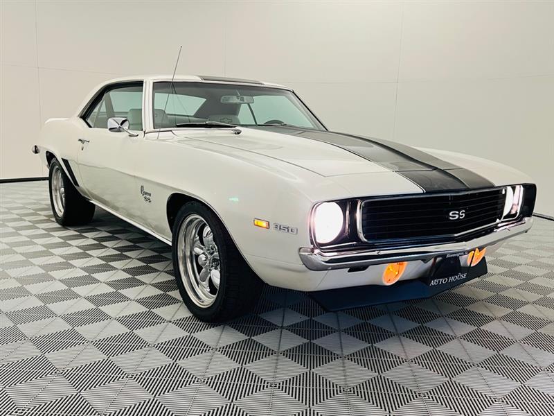 1969 Chevrolet Camaro SS beautiful 69 camaro painted in a beautiful white metallic pearl torque thrust wheels, white bucket seats with horseshoe floor shifter, leather wrapped 3 spoke SS steering wheel, the car had a full frame off restoration 3 years ago nice beautiful paint and body lines, 383 CI v8 stroker engine, automatic transmission, front disc brakes, power steering, COLD AC, dual exhaust, this Camaro has been service and inspected everything works as it should. CALL 309-585-4144 FOR ANY QUESTIONS. LOCATED AT AUTO HOUSE OF BLOOMINGTON. 4 CURRENCY DR BLOOMINGTON IL 61704 WWW.AUTOHOUSEOFBLOOMINGTON.COM